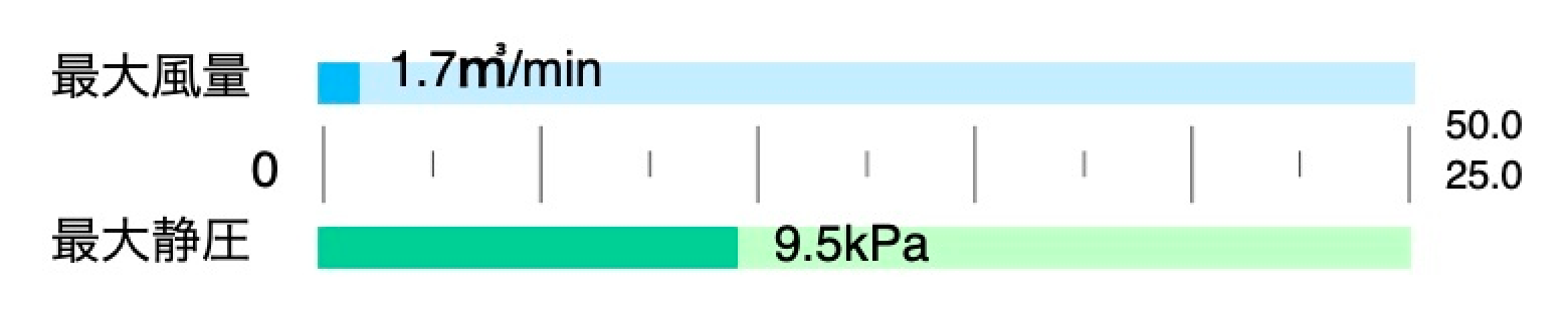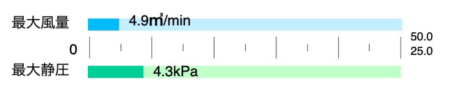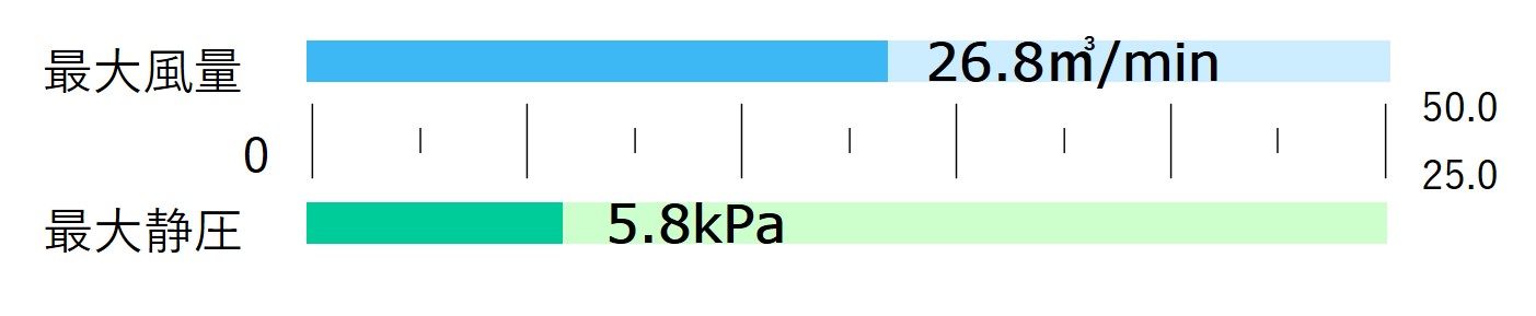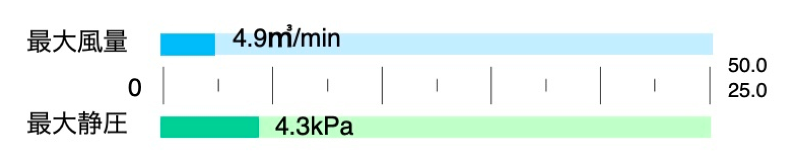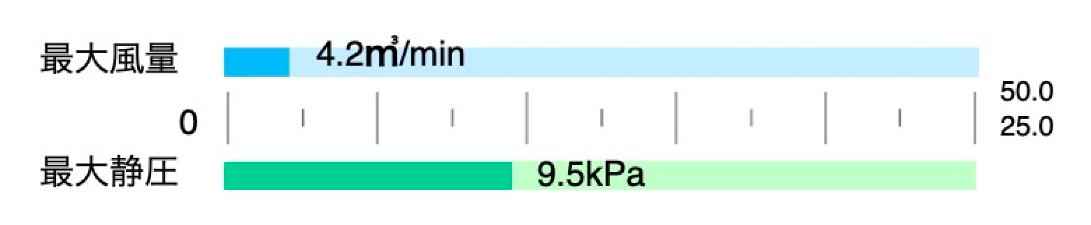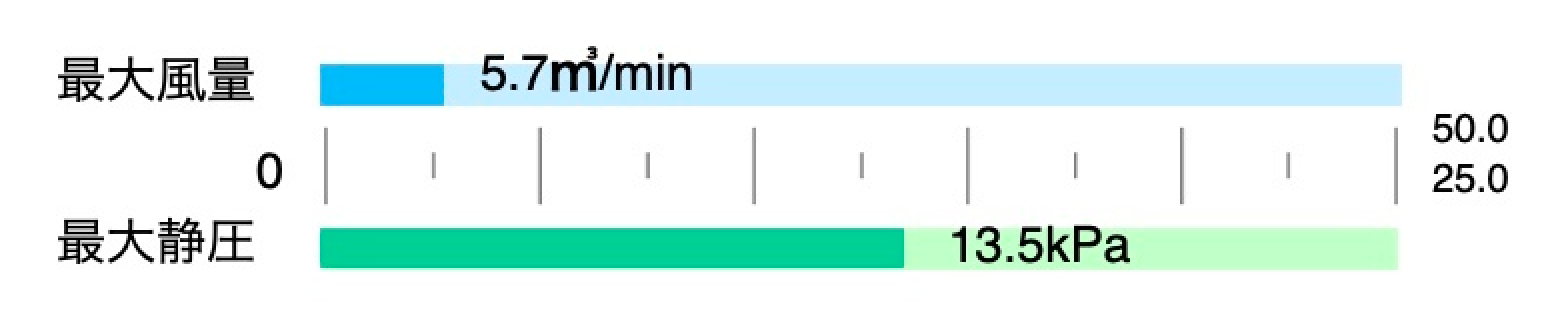 風量と静圧のバランスが取れており、幅広い工程で使用できます。