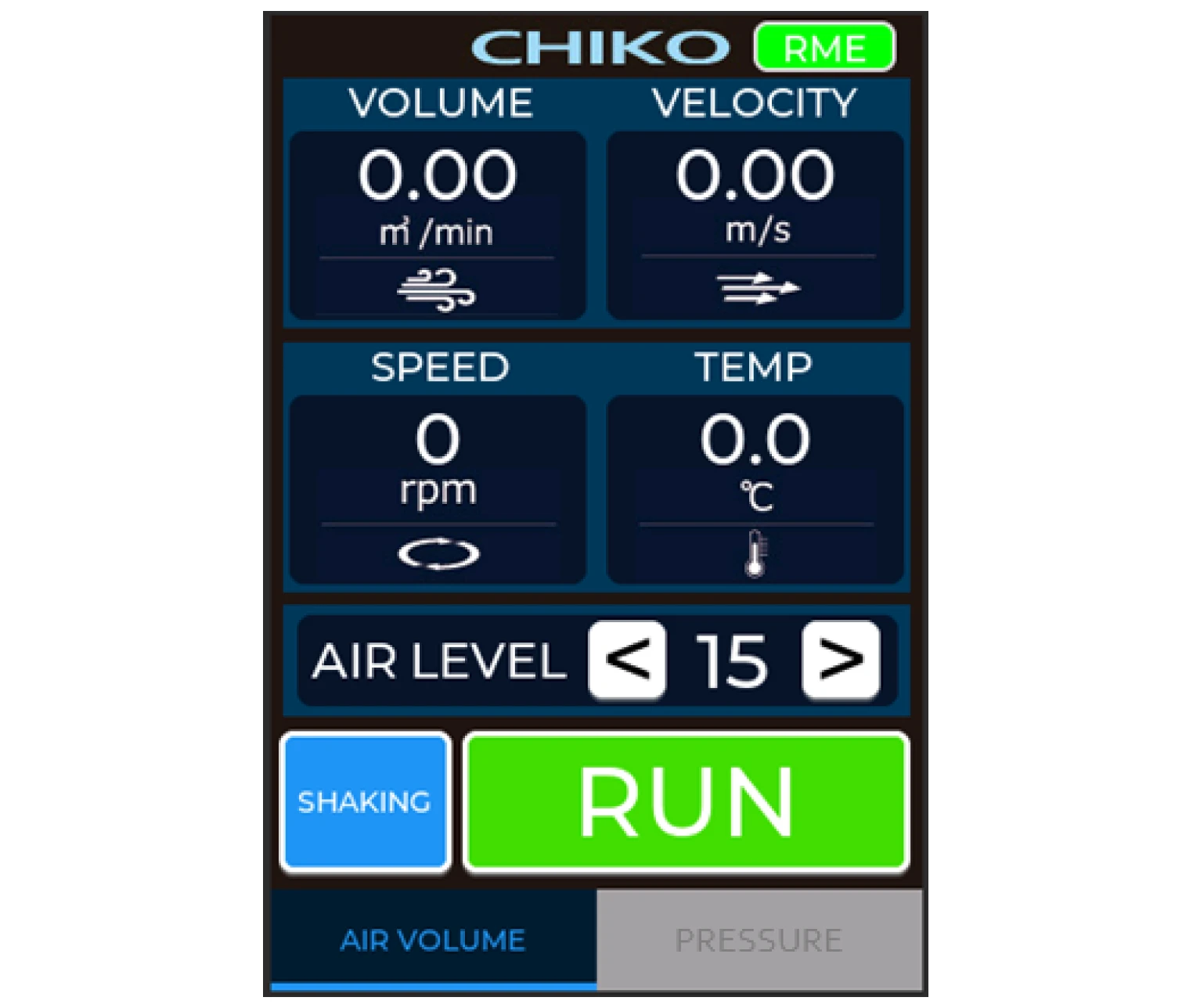 タッチパネルでON/OFF、能力変更など基本機能に加え、風速・風量を一目で監視、見えない風速・風量を数値で表示