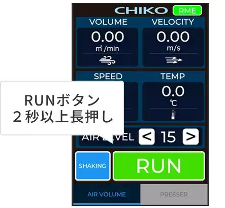 操作パネルの[RUN]を長押しし、パネルから手を離すと装置の運転を開始します。