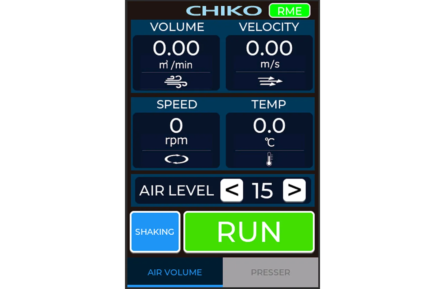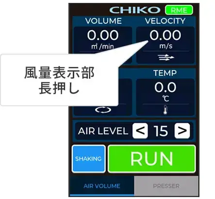 初期風量未登録時は、表示部が黄色地で表示されています。