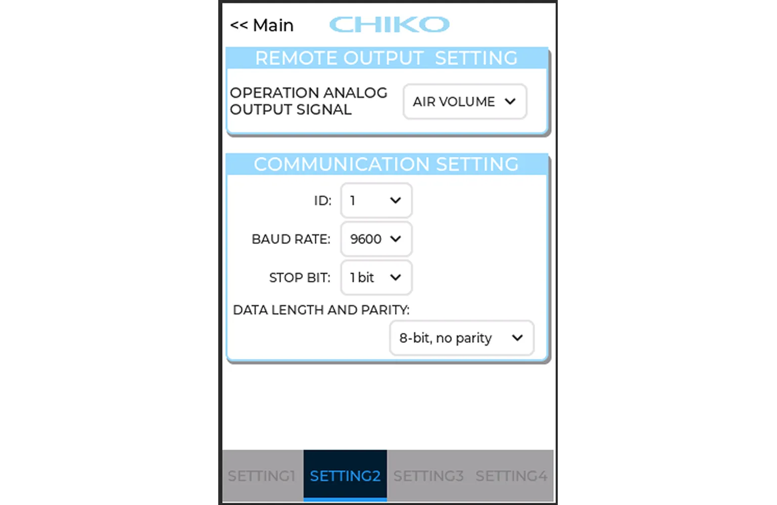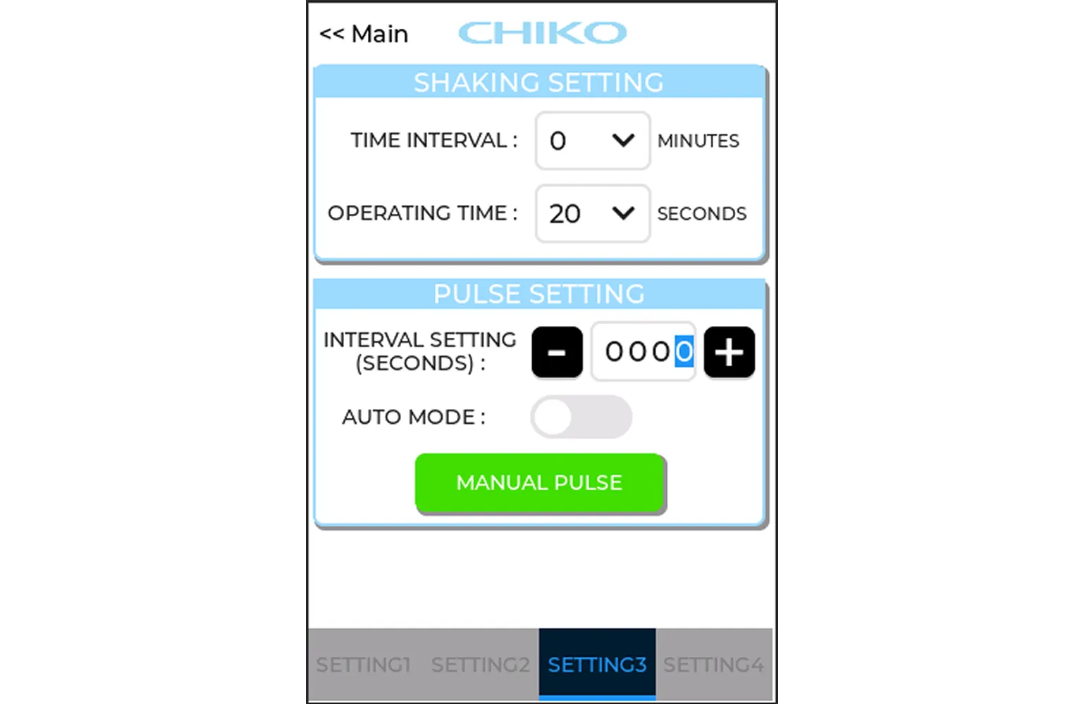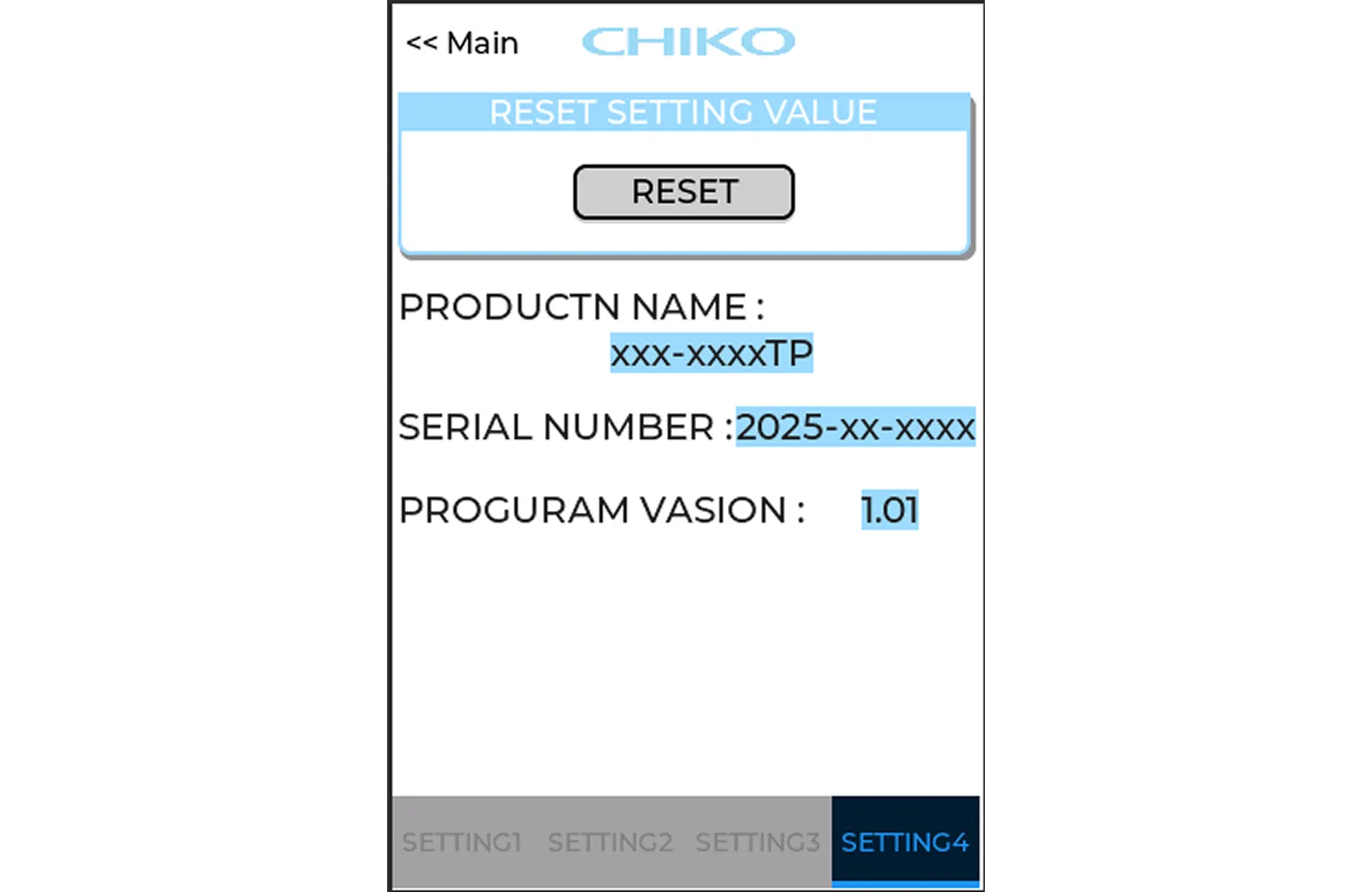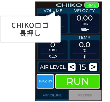 操作パネルの[CHIKOマーク]を長押しし、[SETTING1]画面に移行します。