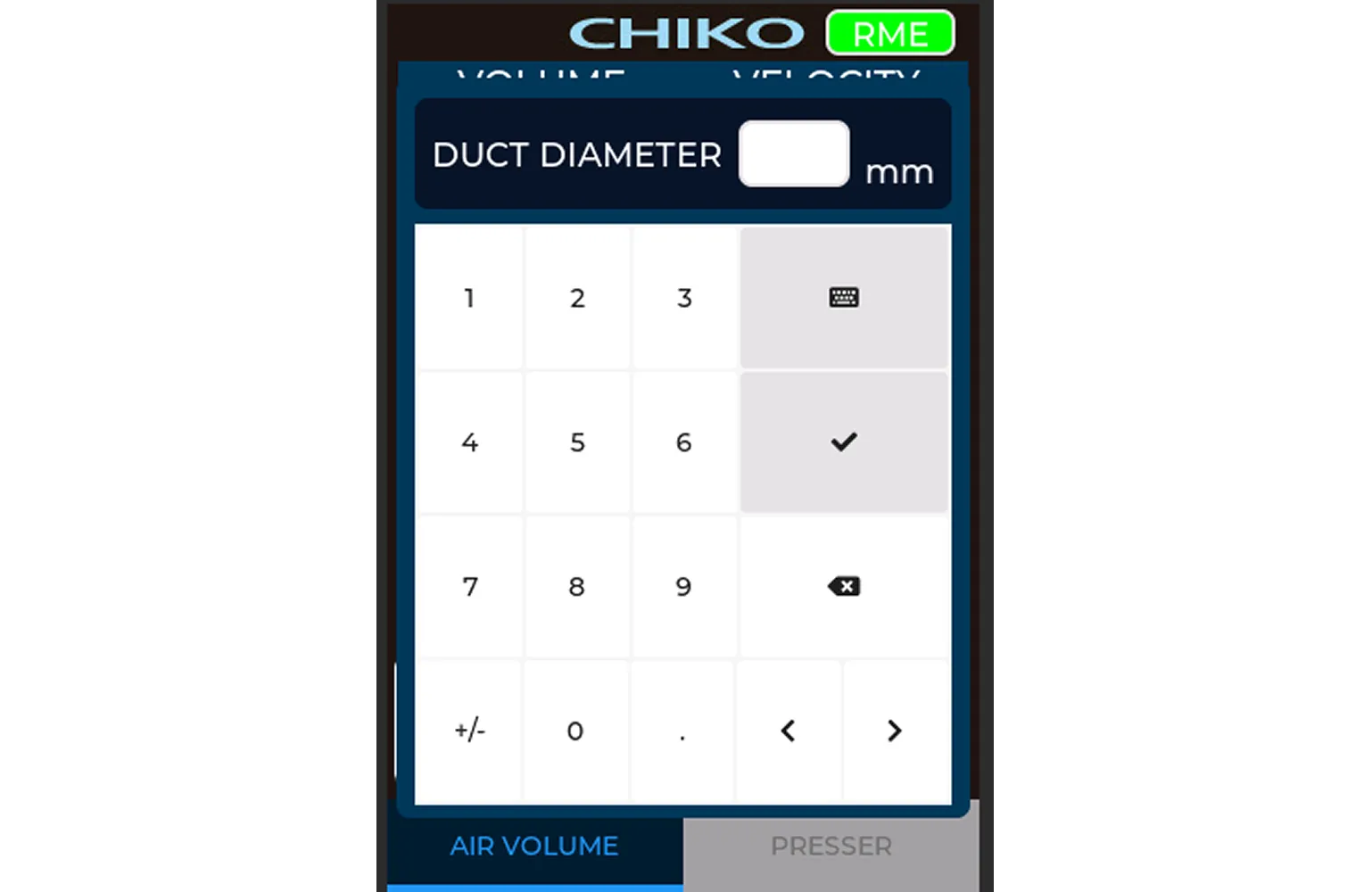 現場で使用するダクト径を入力することで、ダクト径を反映した風速が表示されます。
